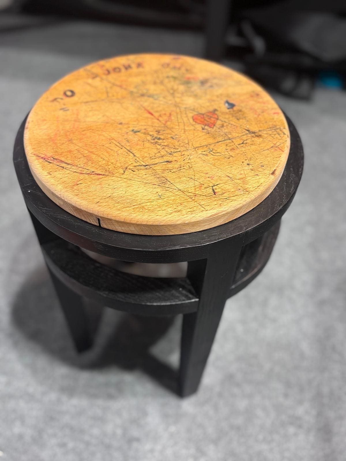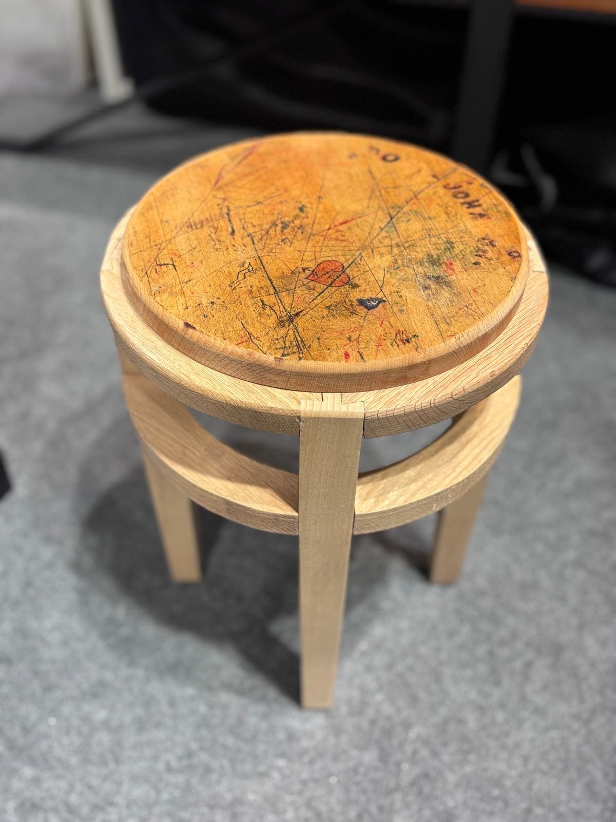 Ce tabouret a été dessiné par Benoît Maltier et est réalisé en partenariat avec le lycée des métiers du bois et des monts du Cantal – Joseph Constant à Murat (15)